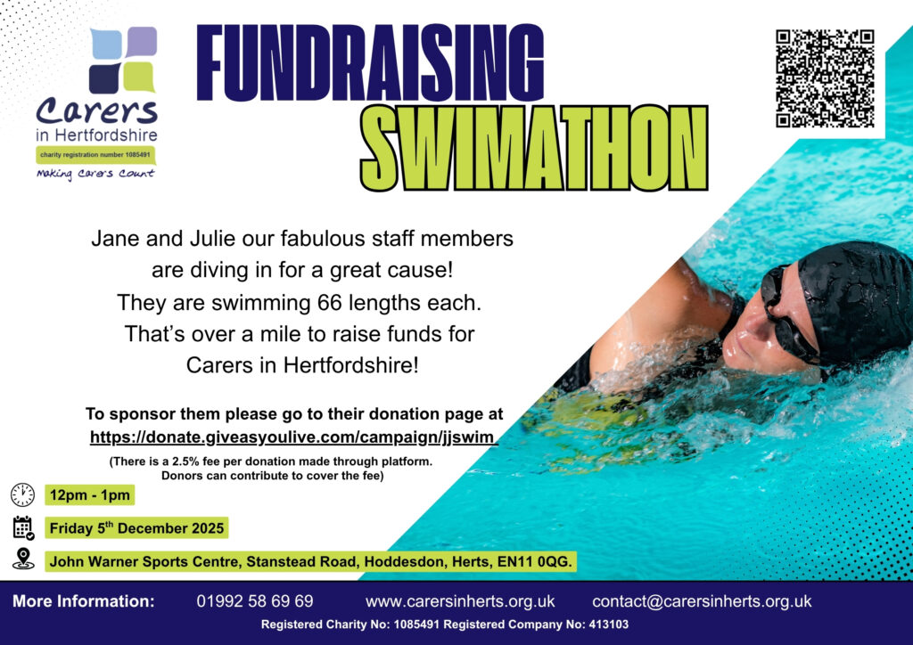 Jane Christou, from our Administration Team, and Julie Hayes, our Hub and Volunteer Co-ordinator, will take on the swimathon challenge on Friday 5th December 2025.